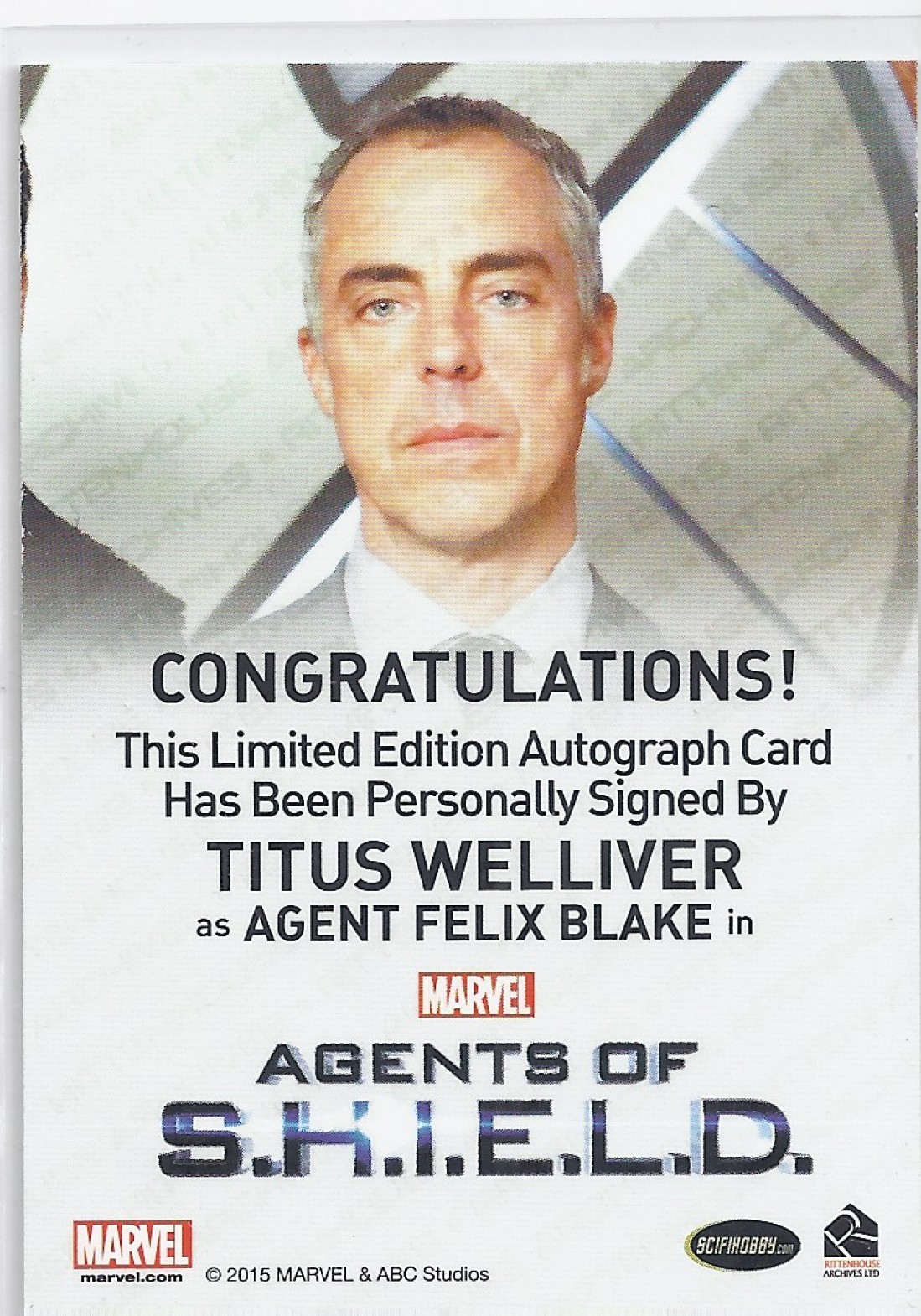 Agents of Shield Season Autograph Card Full Bleed TITUS WELLIVER as Agent Felix Blake DEADWOOD
