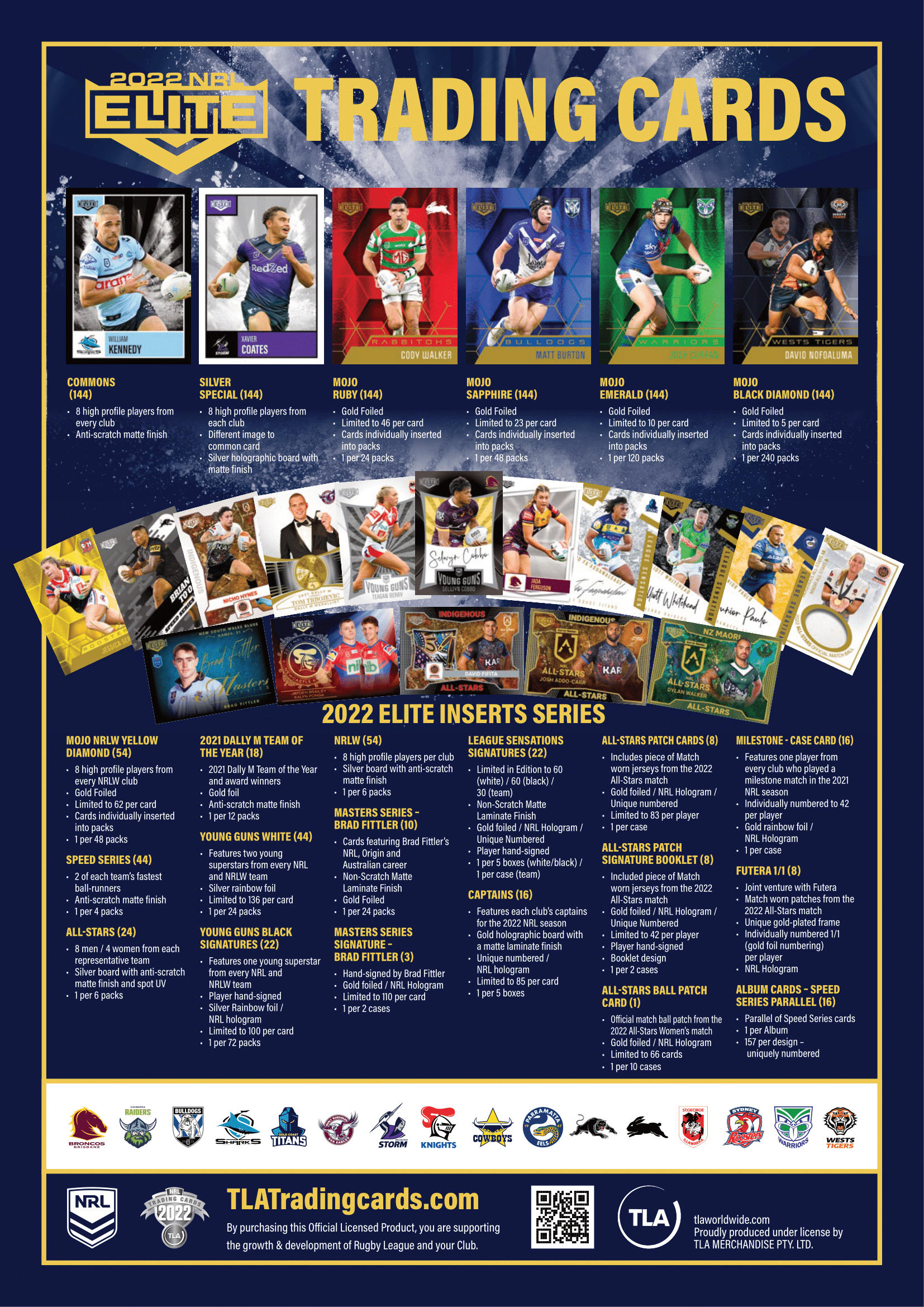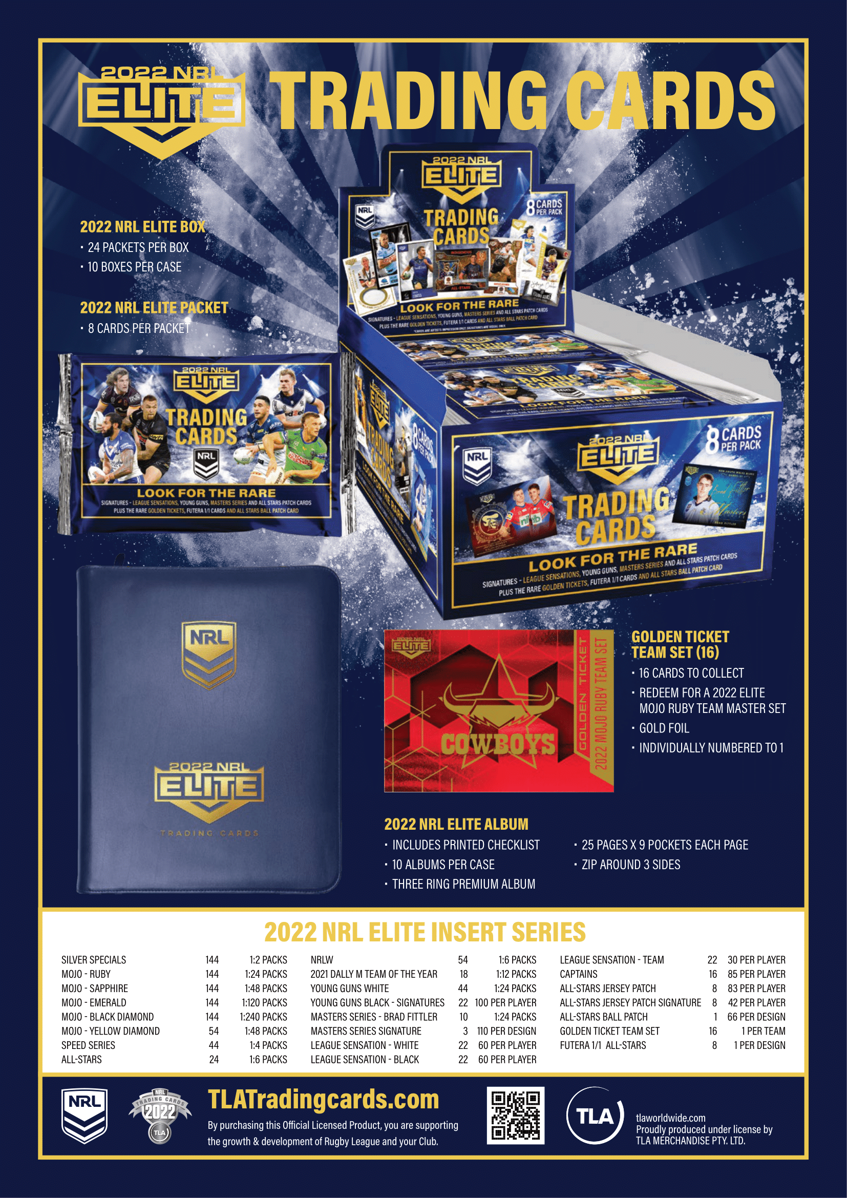 2022 NRL Elite is just around the corner, with the official release date currently scheduled for Tuesday 16th of August 2022. Today Elite has officially gone ON SALE as a pre release via hobby stores. We are pleased to say that there are various combinations for purchase available on our website.