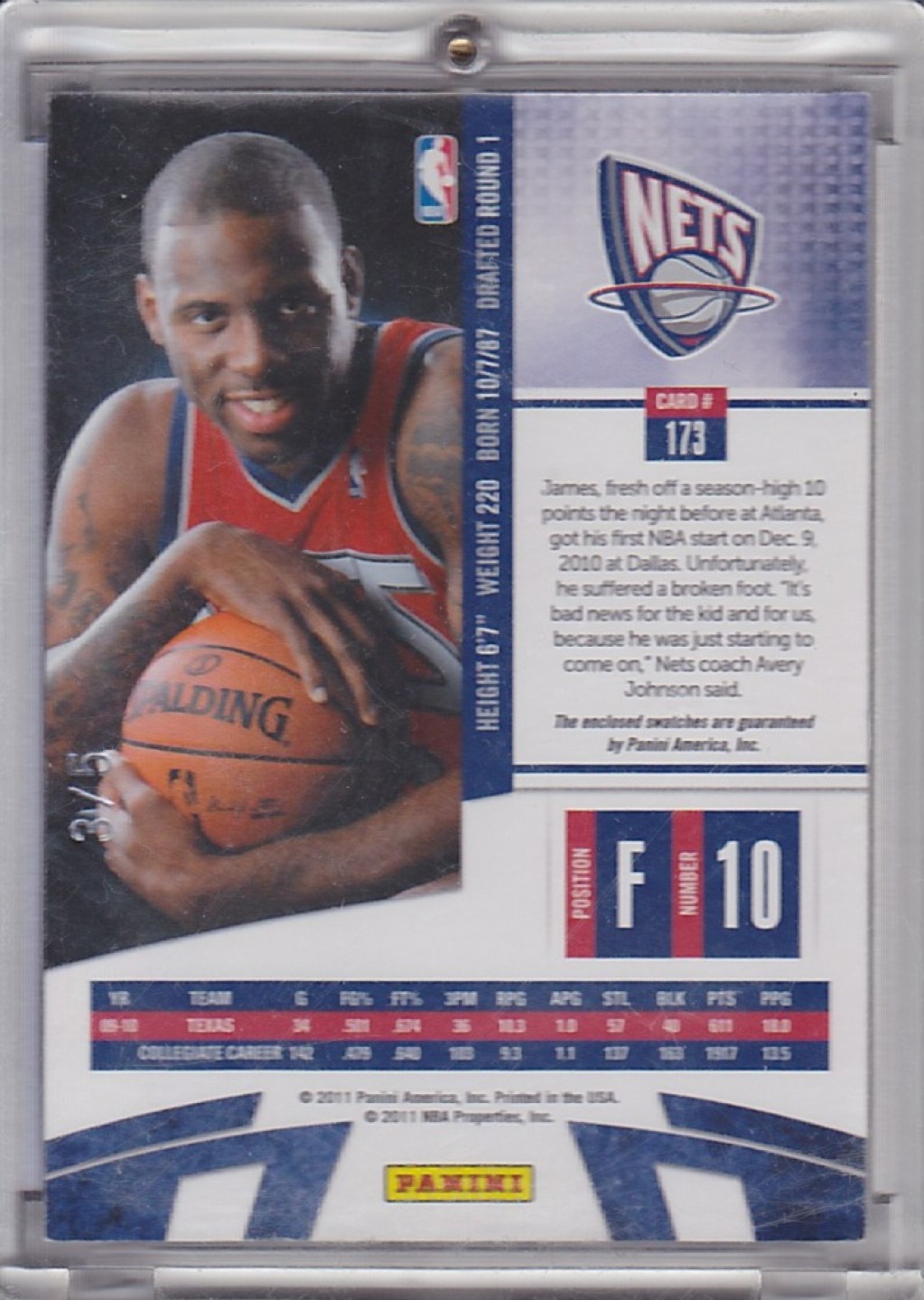 Damion James 10-11 Absolute Memorabilia Rookie Premiere Mateirals Jumbo Patch #d /5