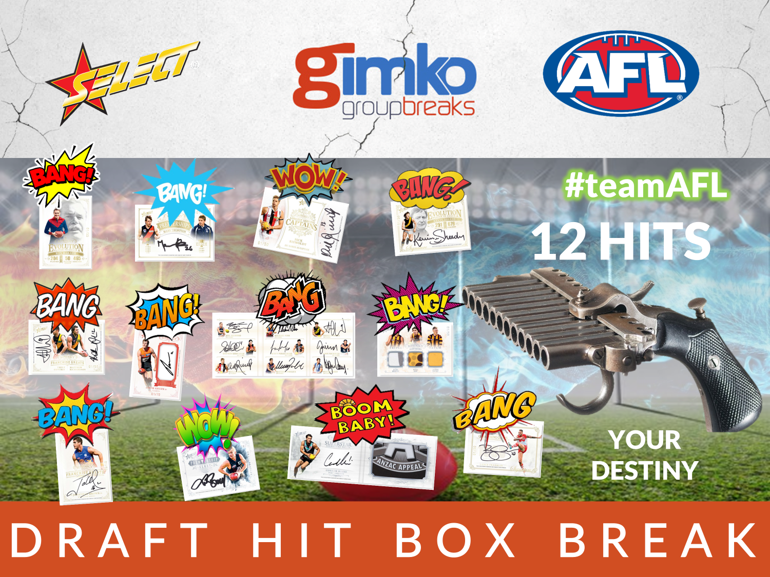 - If we hit 11 cards, then we will throw in a Gimko AFL HSP (which is a sealed pack with a graded card in it) that can be selected at any time by any pick in the draft. This is to ensure that all 12 spots at least get a card in the break.