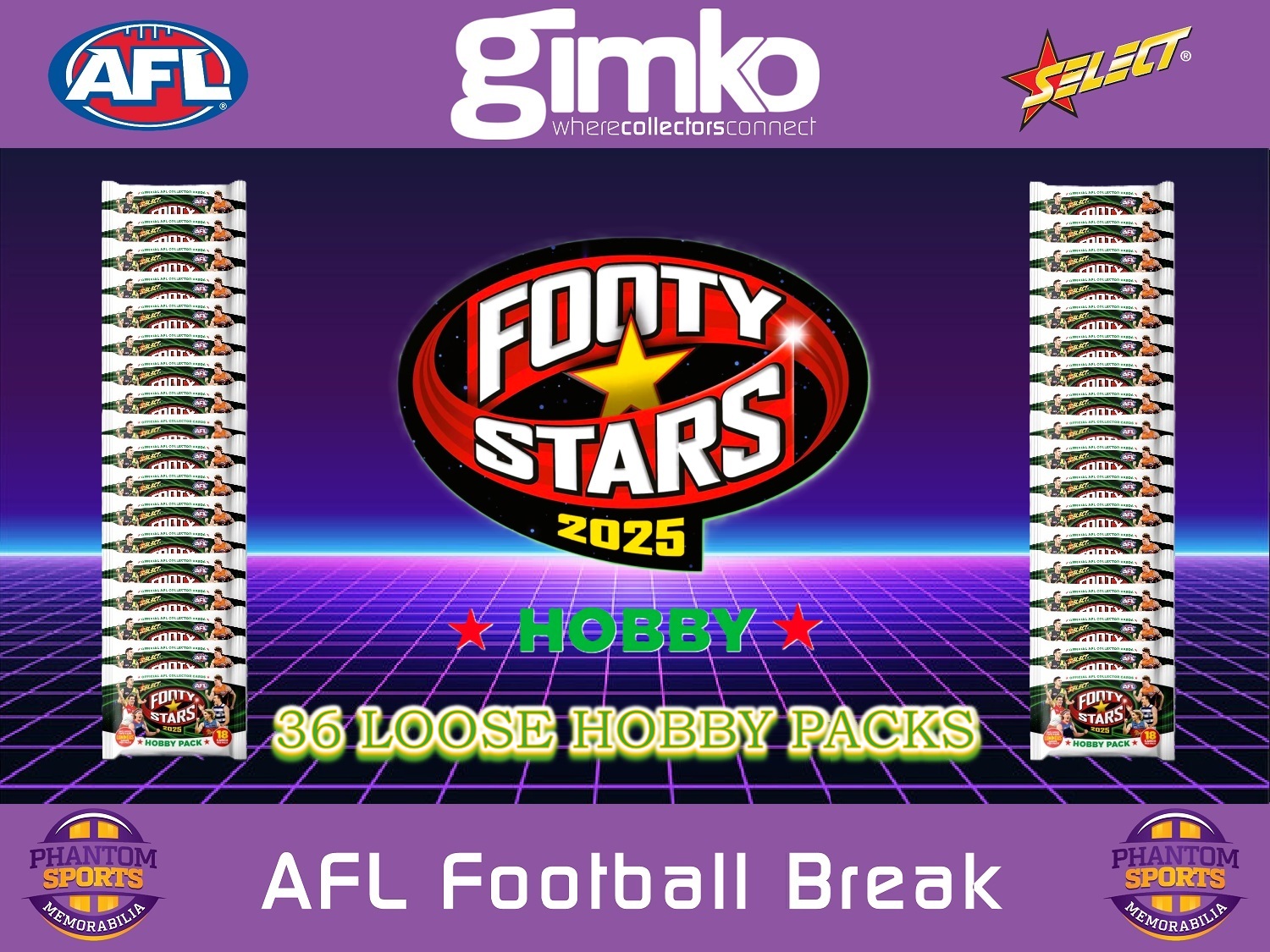 - 2025 AFL Select Footy Stars Hobby Loose Packs x 36