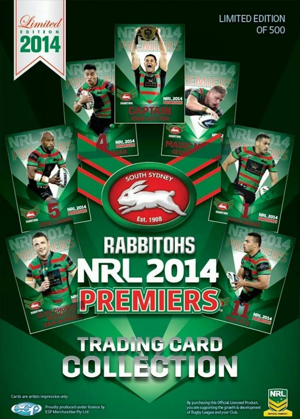 GREEN Set - South Sydney Rabbitohs 2014 NRL Premiers Trading Card Collection - 2014 ESP Limited
