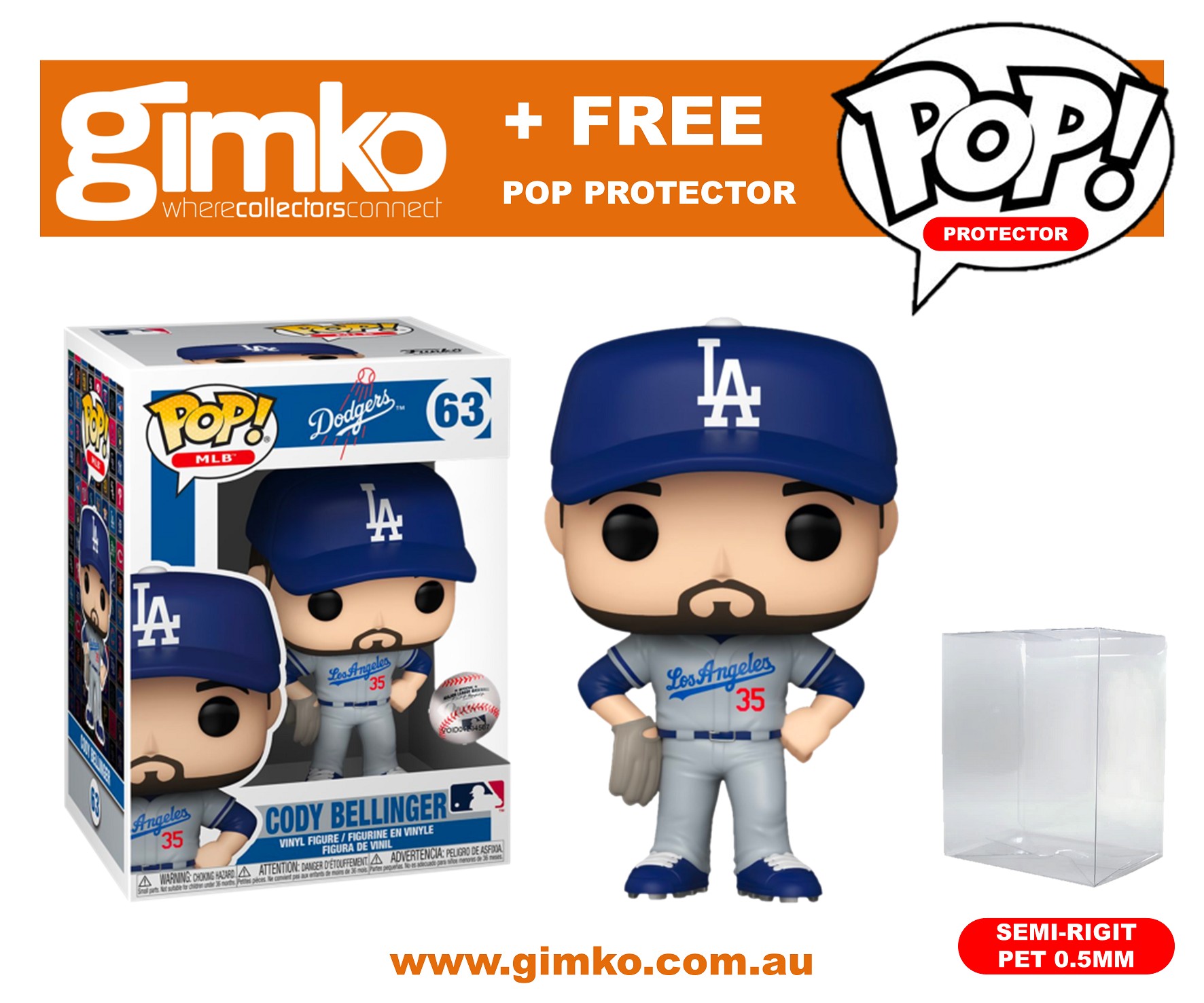 Item: MLB Baseball - Cody Bellinger Los Angeles Dodgers (Away Uniform) Pop! Vinyl (#63) + Protector
