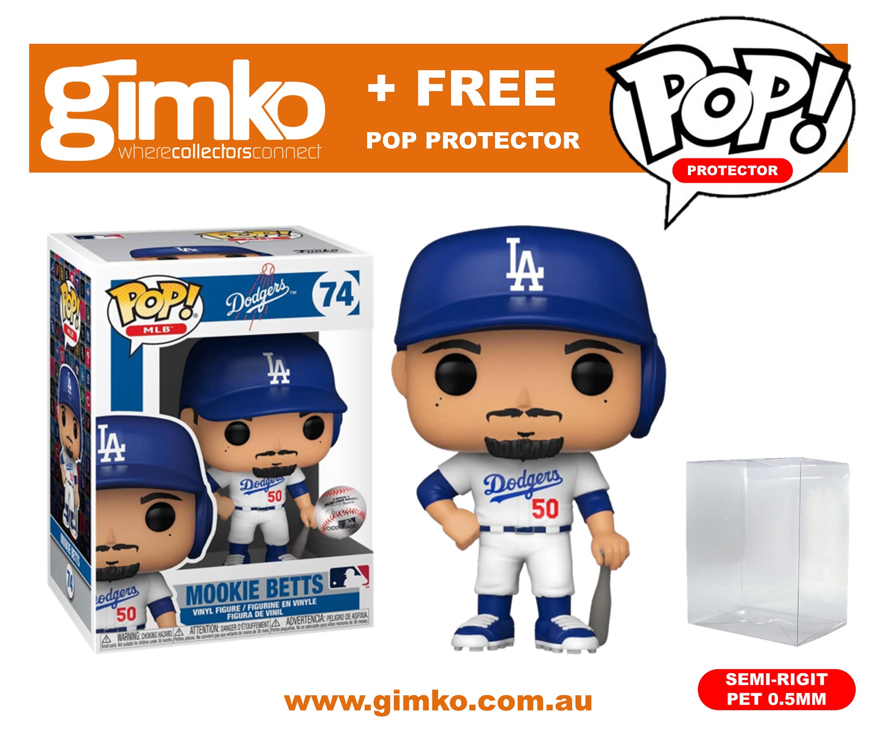 Item: MLB Baseball - Mookie Betts Los Angeles Dodgers (Home Uniform) Pop! Vinyl (#74) + Protector