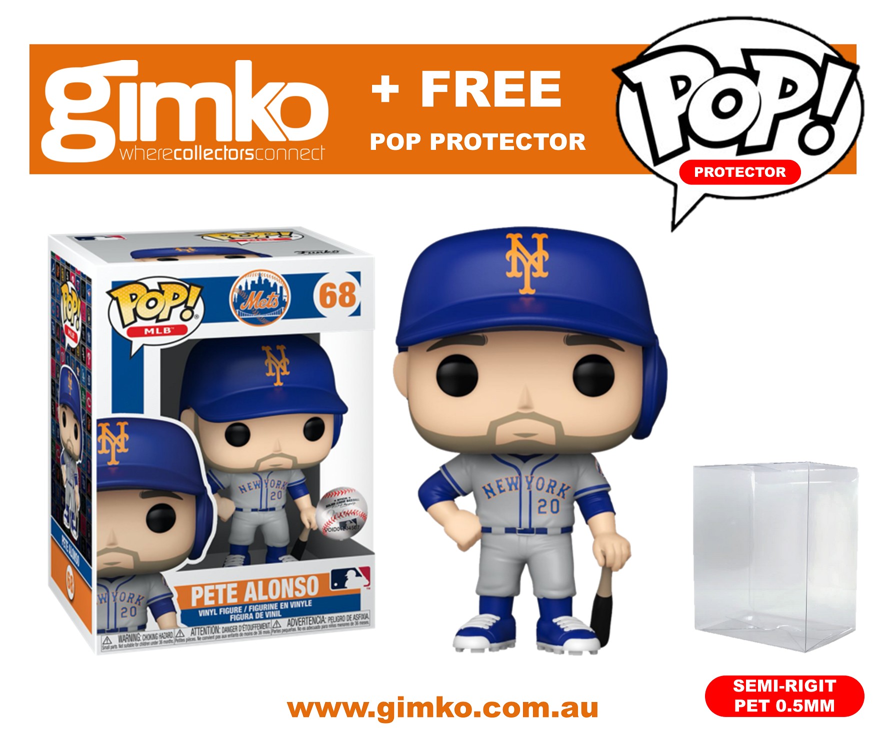 Item: MLB Baseball - Pete Alonso New York Mets (Away Uniform) Pop! Vinyl (#68) + Protector
