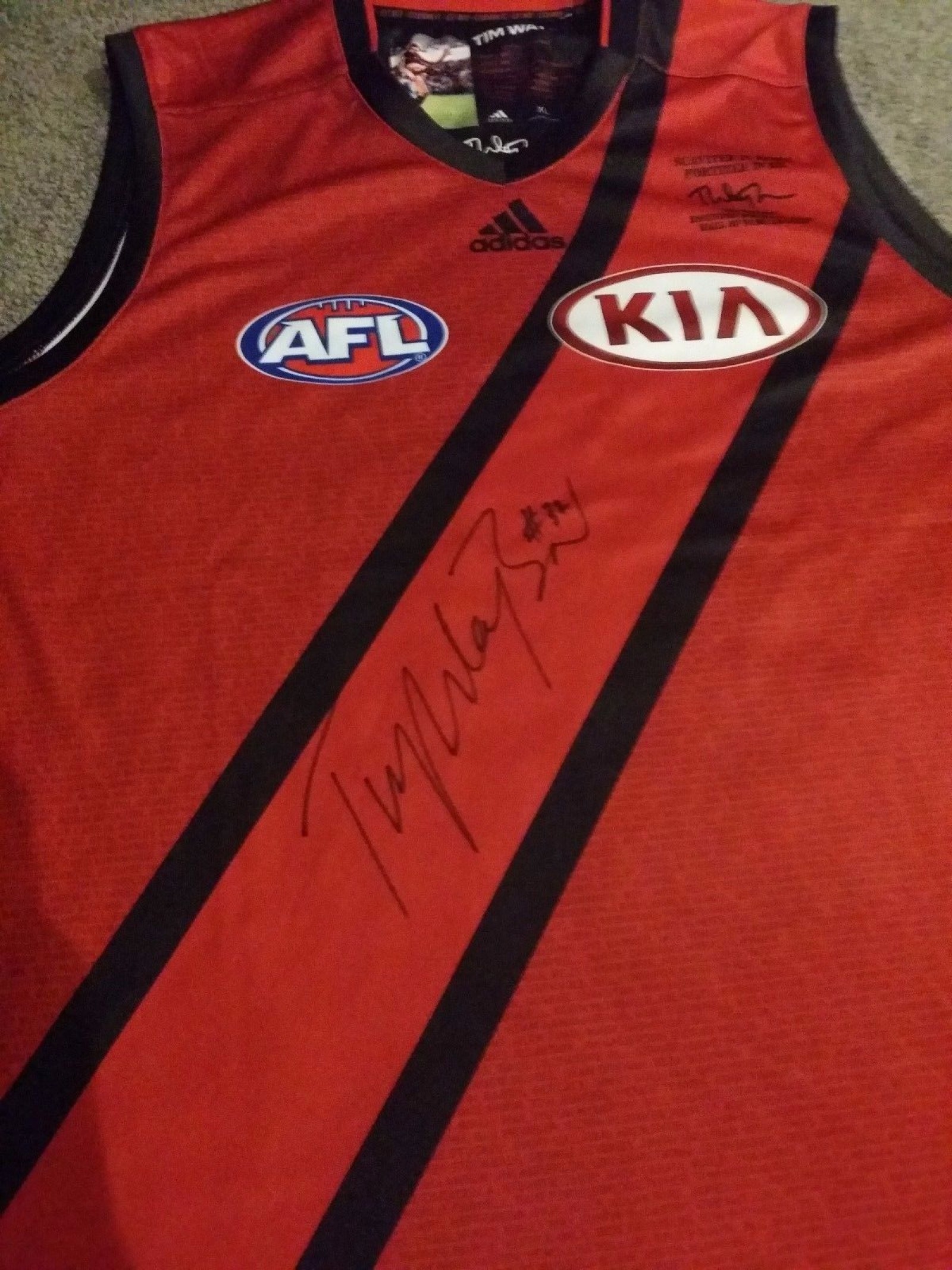 NEW AFL ESSENDON BOMBERS CHAMPION TIM WATSON SIGNED HERITAGE JUMPER GUERNSEY