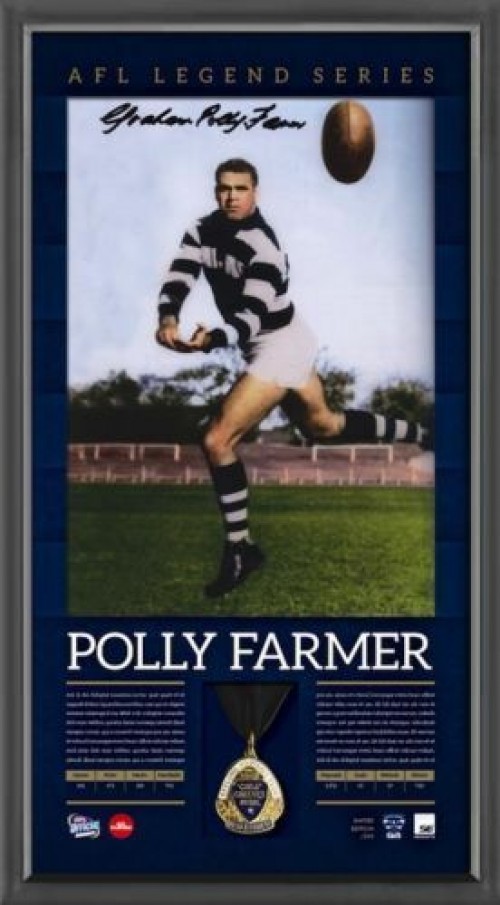 OFFICIAL AFL GEELONG CATS LEGEND HAND SIGNED GRAHAM POLLY FARMER PRINT FRAMED