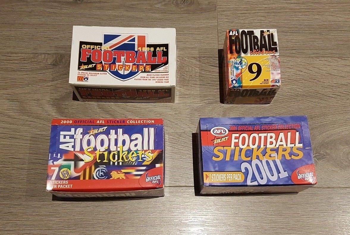 RARE 1998 1999 2000 & 2001 AFL OFFICIAL SELECT FACTORY STICKERS BOX ALL 4 BOXES