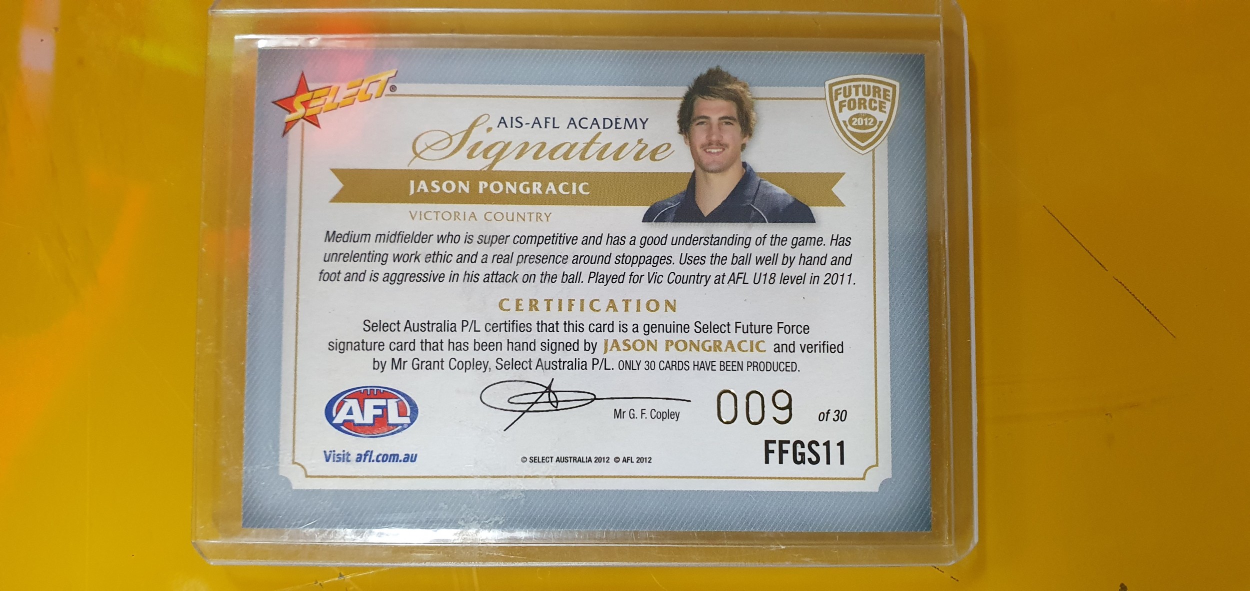 Select 2012 FUTURE FORCE GOLD SIGNATURE Jason Pongracic #009 of 30