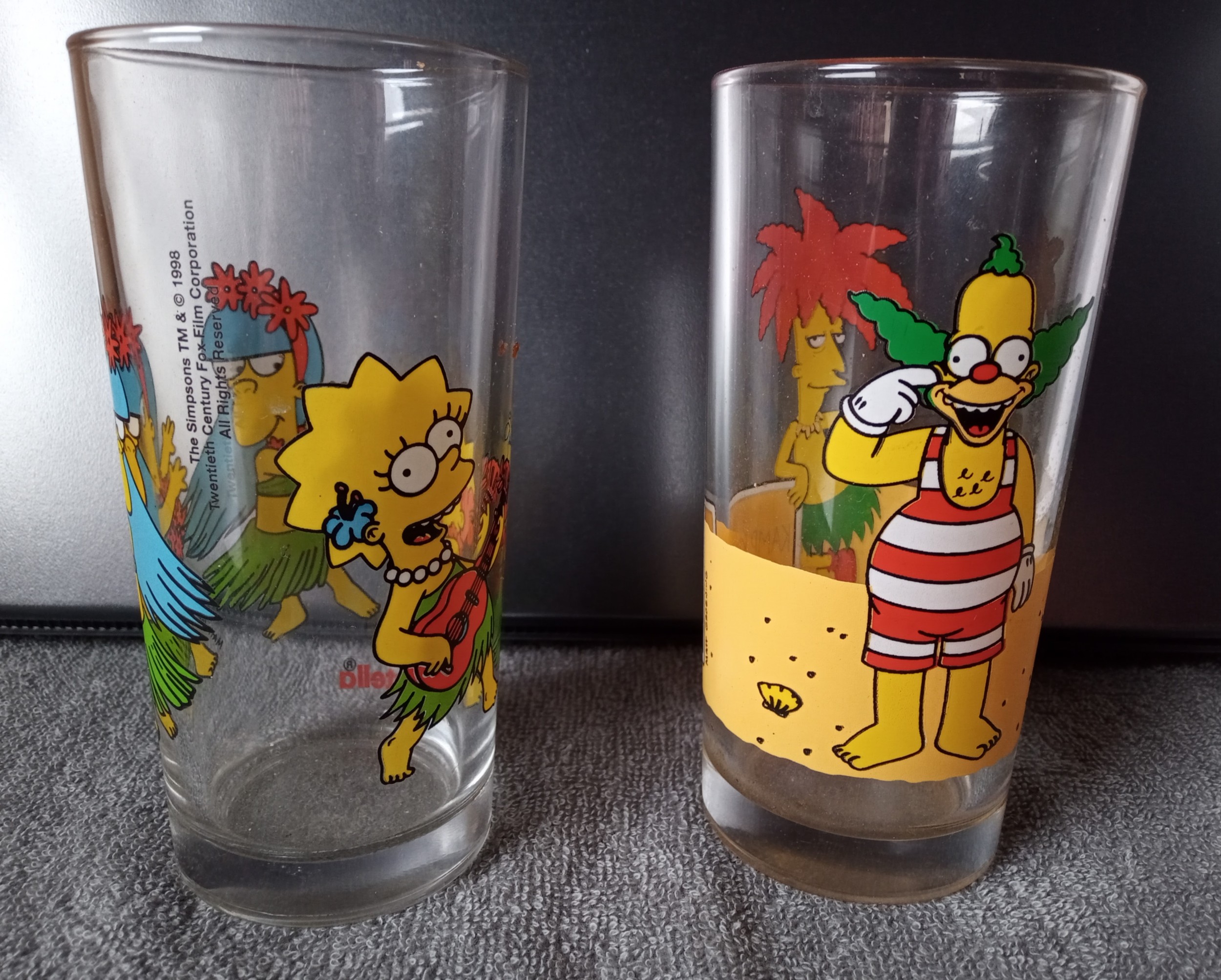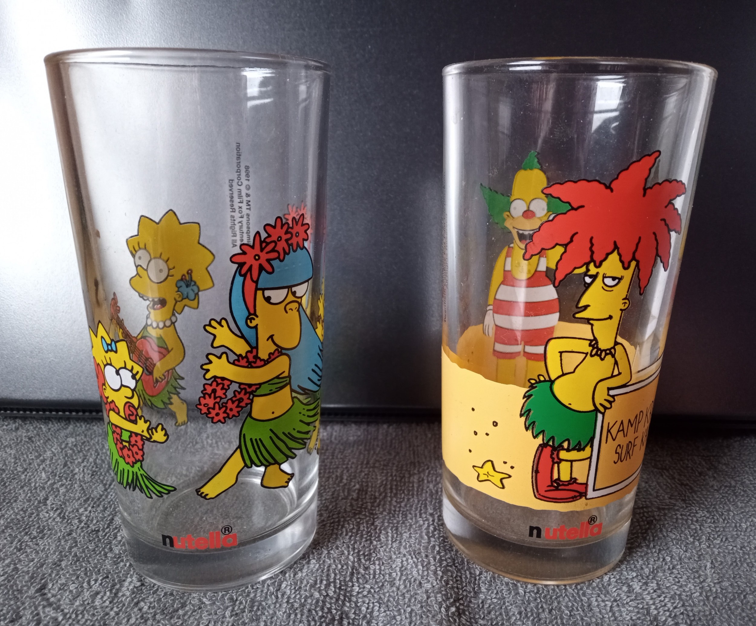THE SIMPSONS - NUTELLA (1998) TUMBLER GLASSES- 2 Piece SET 👀🟡🟣🟡🟣👀