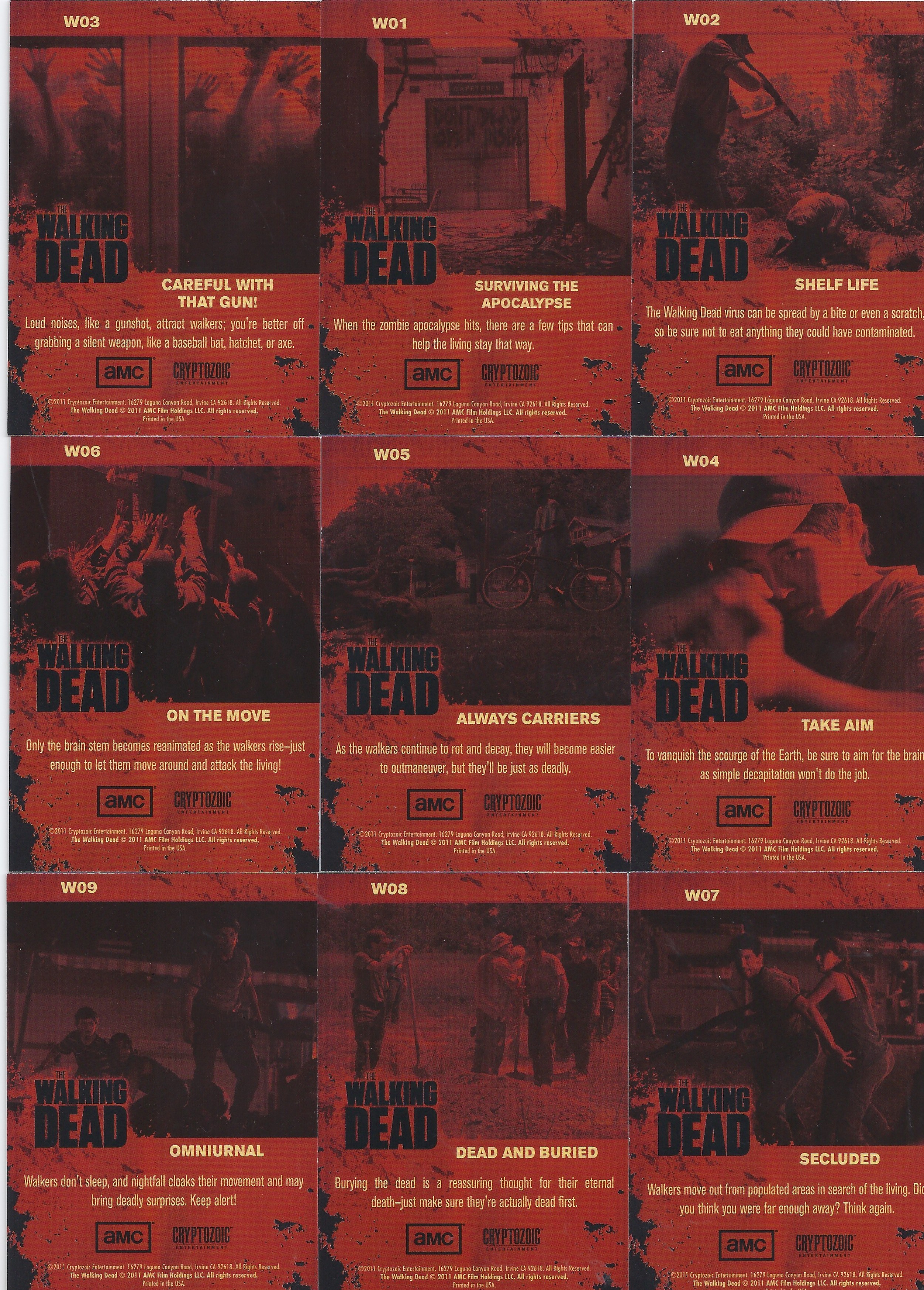 The Walking Dead Season 1 Chase Card Set 9 Walker Cards W01-W09