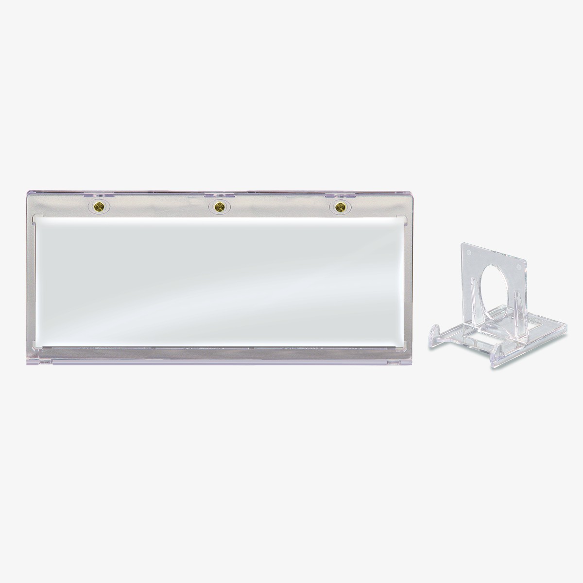 Ultra PRO's ONE-TOUCH Double Booklet Card Holders for 187mm double booklet cards are premium trading card storage cases. Designed as the final destination for your booklet cards, our two-piece ONE-TOUCH holders are uniquely designed with a slide-in hinge and triple-tight magnetic closure. The holder provides UV-resistant, no-PVC, and acid-free protection to ensure your valuable hit retains its condition while under the display. Our ONE-TOUCH booklet holder comes with a minimalist two-piece display stand with an adjustable viewing angle. This model can hold horizontal double booklet cards that open up to 187 millimeters in length.