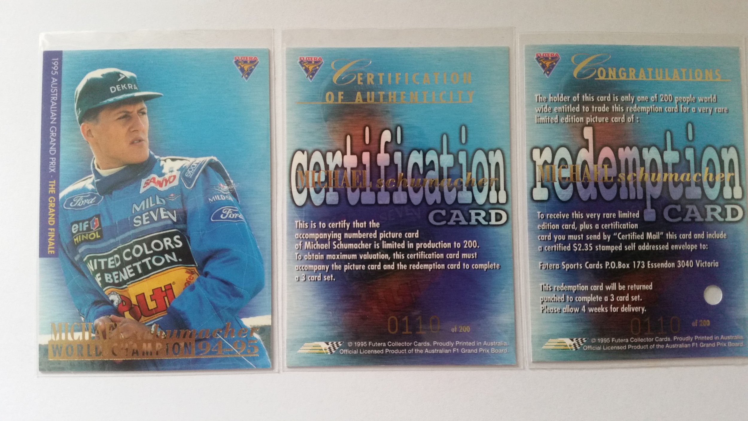 Very Rare Michael Schumacher 1994-1995 World Champion Collector card