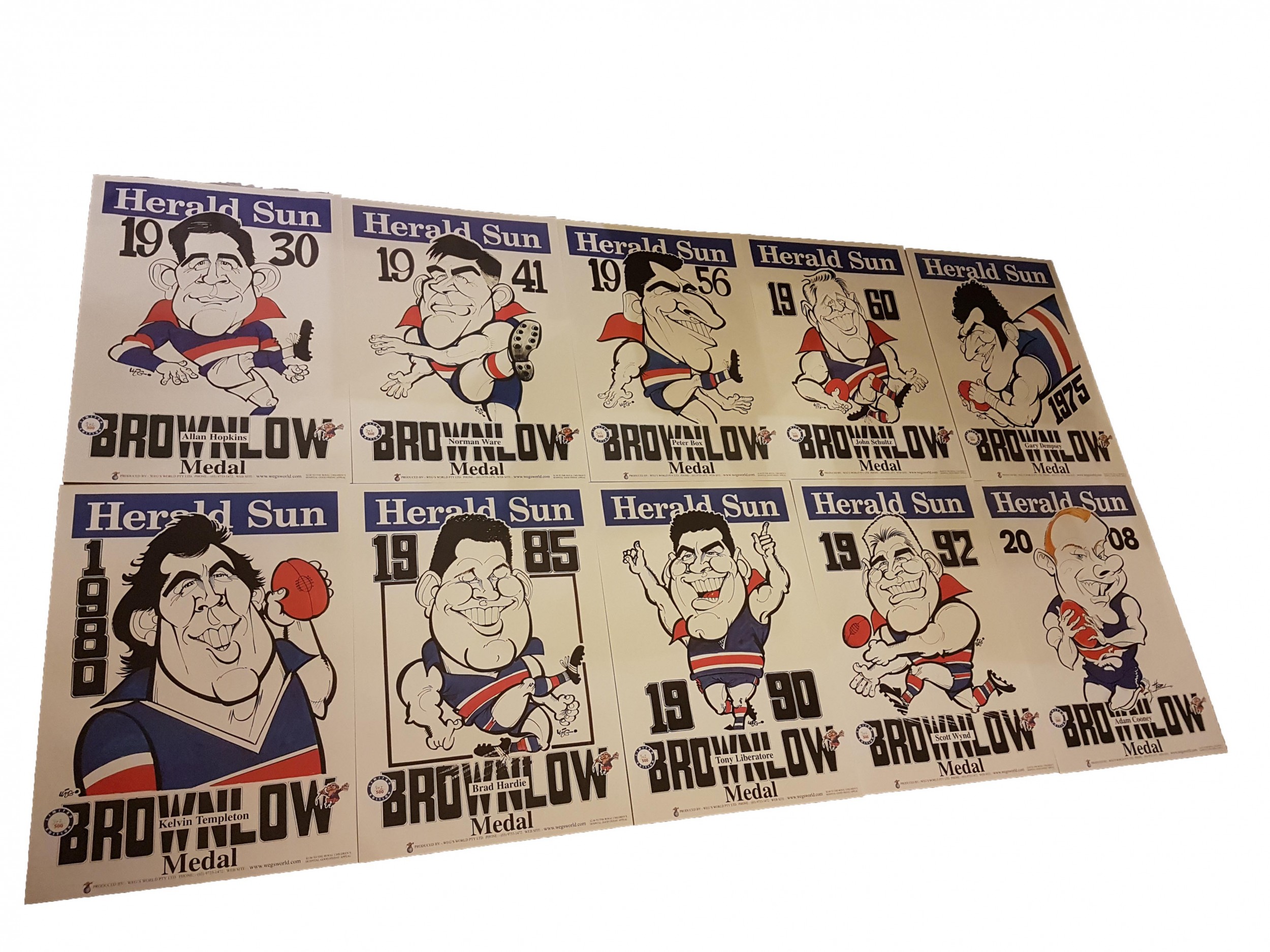 WEG POSTER SET BULLDOGS X 10 1930 ~ 2008 BROWNLOW WEG SET ALL SAME NUMBER - FREE POSTAGE