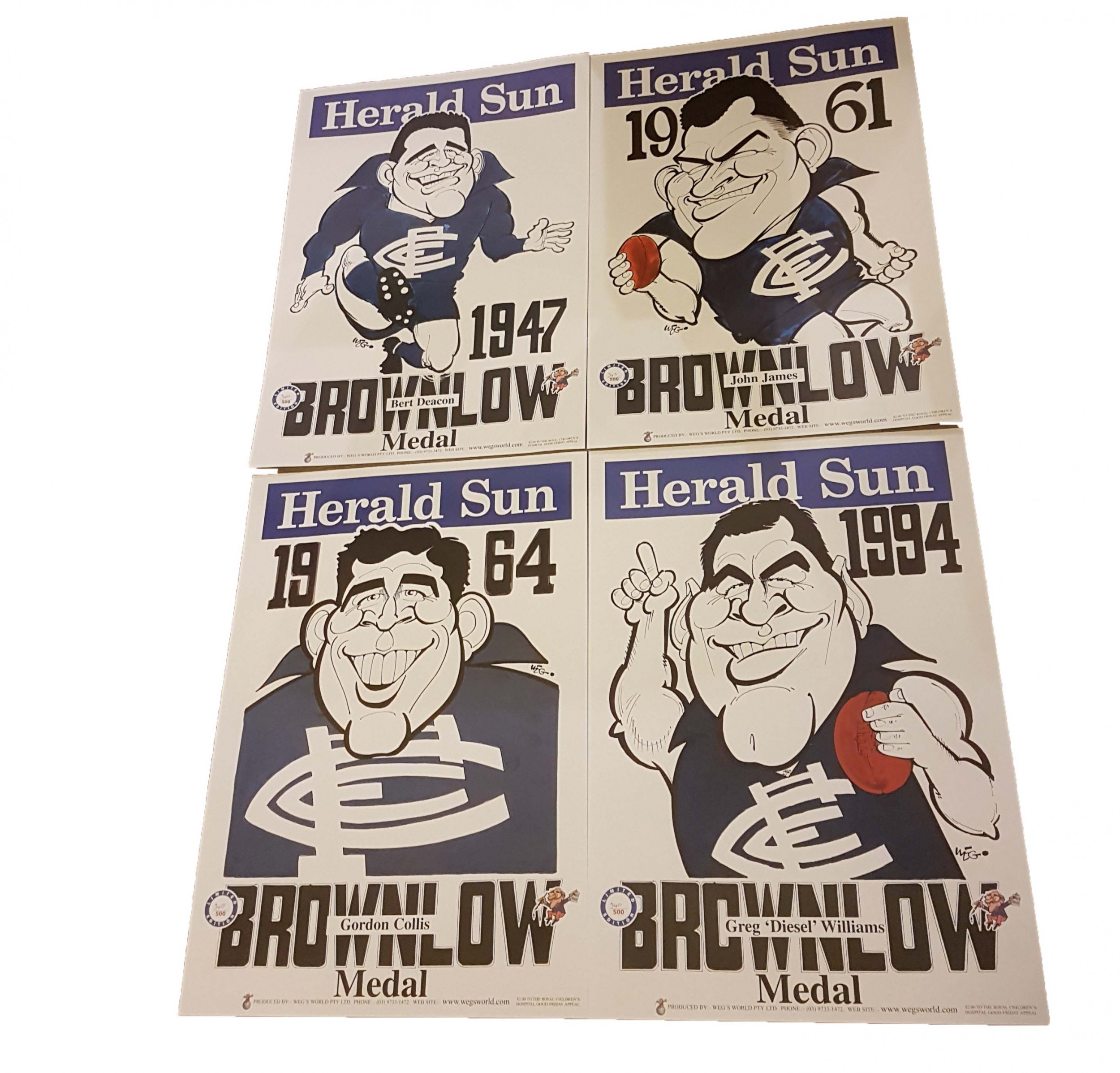 WEG POSTER SET CARLTON BLUES X 4 1947 ~ 1994 BROWNLOW WEG SET ALL SAME NUMBER - FREE POSTAGE