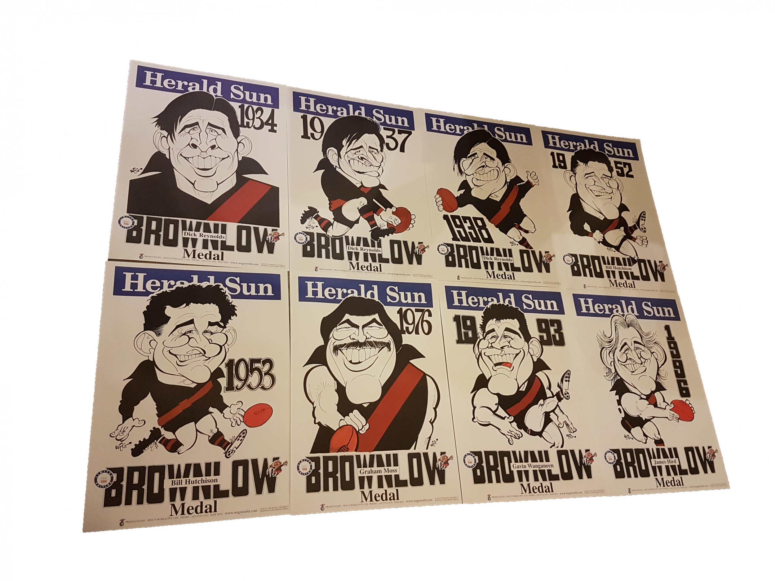 WEG POSTER SET ESSENDON BOMBERS X8 1934 ~ 1996 BROWNLOW WEG SET ALL SAME NUMBER - FREE POSTAGE