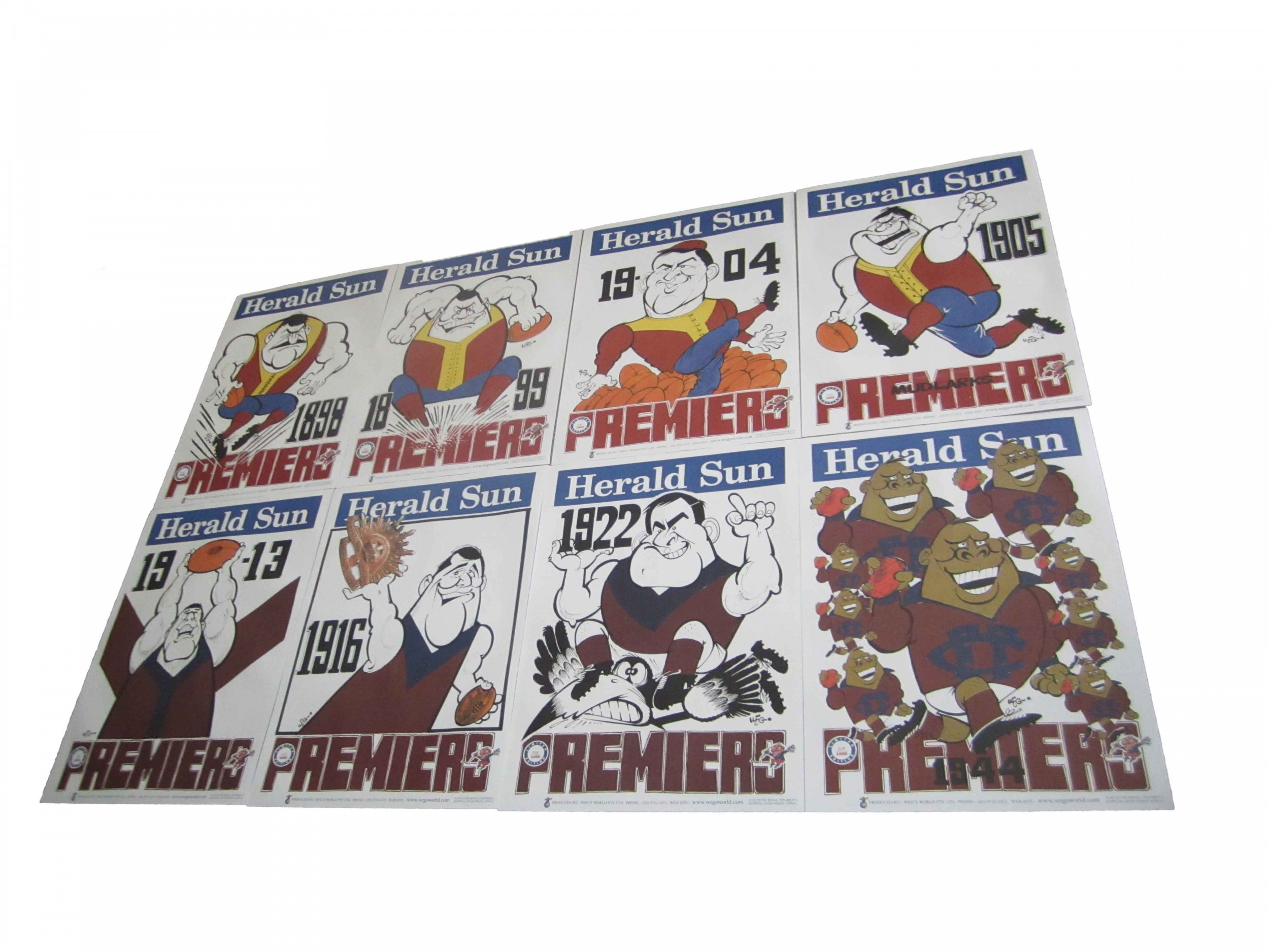 WEG POSTER SET FITZROY LIONS X 8 1898 ~1944 PREMIERSHIP ALL SAME NUMBER - FREE POSTAGE