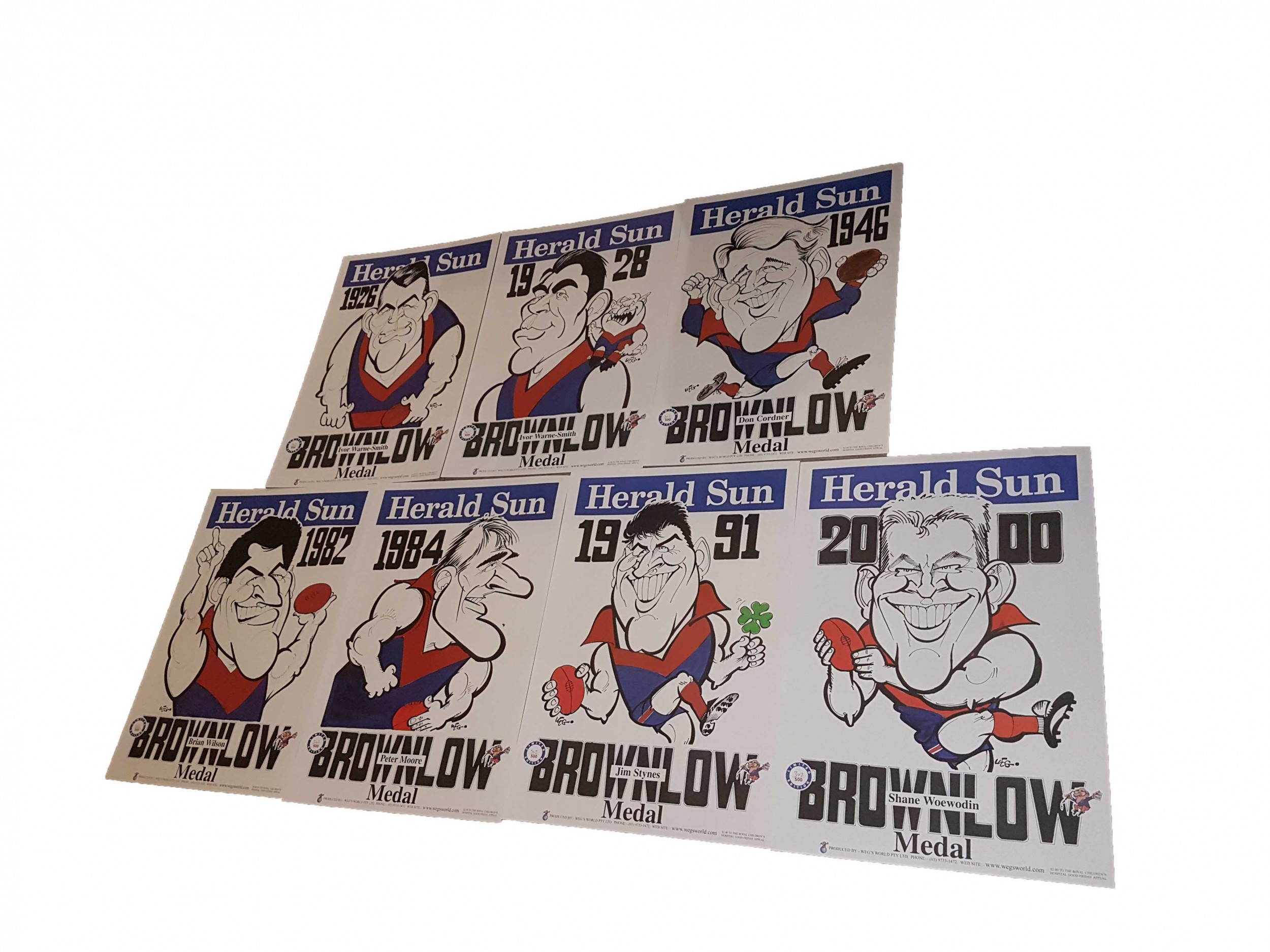 WEG POSTER SET MELBOURNE DEMONS X 7 1926 ~ 200 BROWNLOW WEG SET ALL SAME NUMBER - FREE POSTAGE