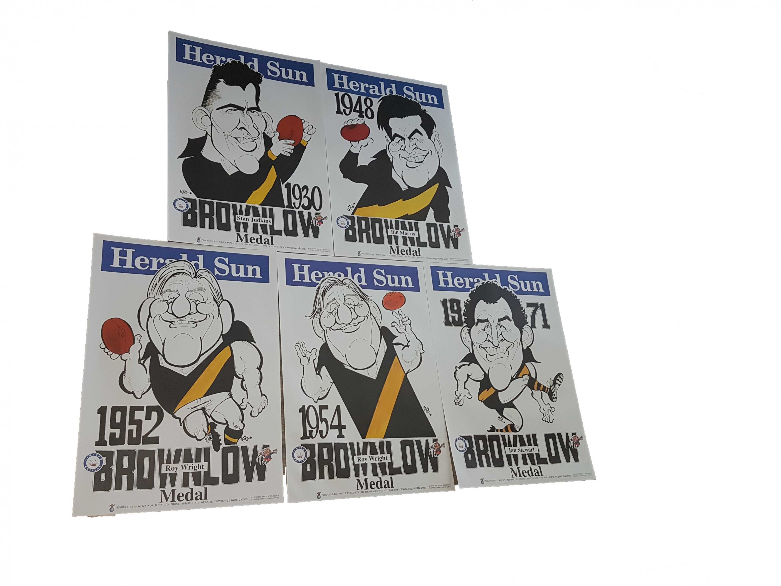 WEG POSTER SET RICHMOND TIGERS X 5 1930 ~ 1971 BROWNLOW WEG SET ALL SAME NUMBER - FREE POSTAGE