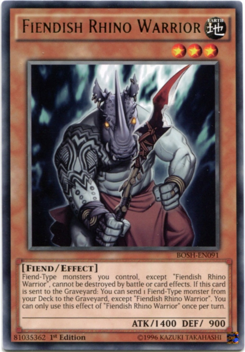 Yu-Gi-Oh! Fiendish Rhino Warrior (BOSH-EN091) - Rare - NM-MINT - 1st Edition