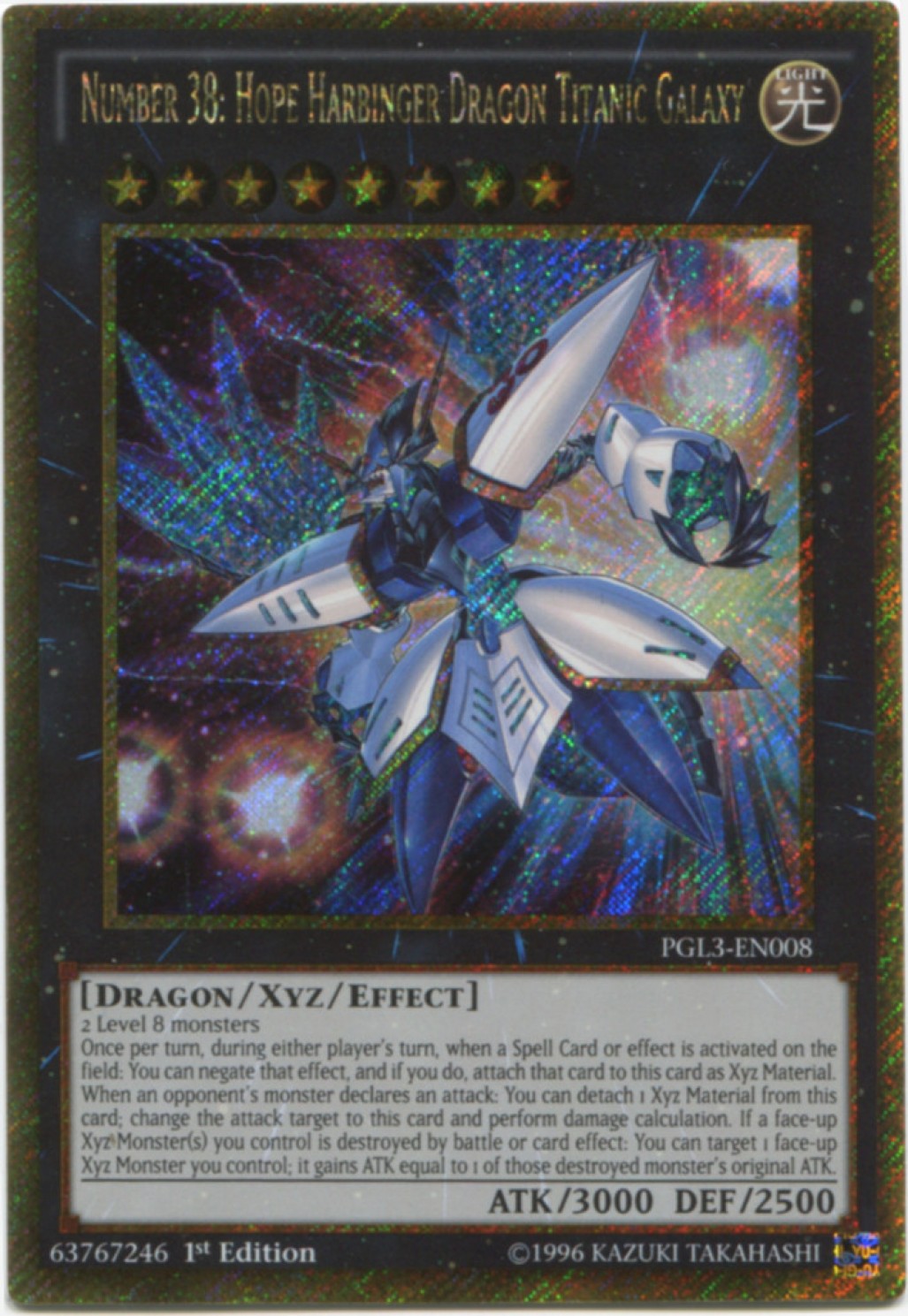 Yu-Gi-Oh! Number 38: Hope Harbinger Dragon Titanic Galaxy (PGL3-EN008) - Gold Secret Rare - NM-MINT - 1st Edition