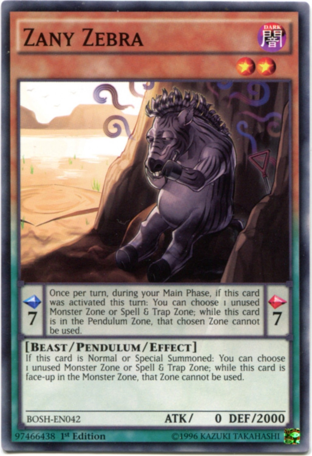 Yu-Gi-Oh! Zany Zebra (BOSH-EN042) - Short Print - NM-MINT - 1st Edition
